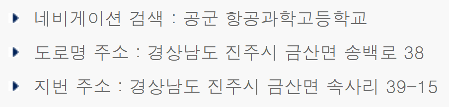 경상남도 진주시 금산면에 위치하며, 공군교육사령부 부대 내에 학교가 위치합니다.