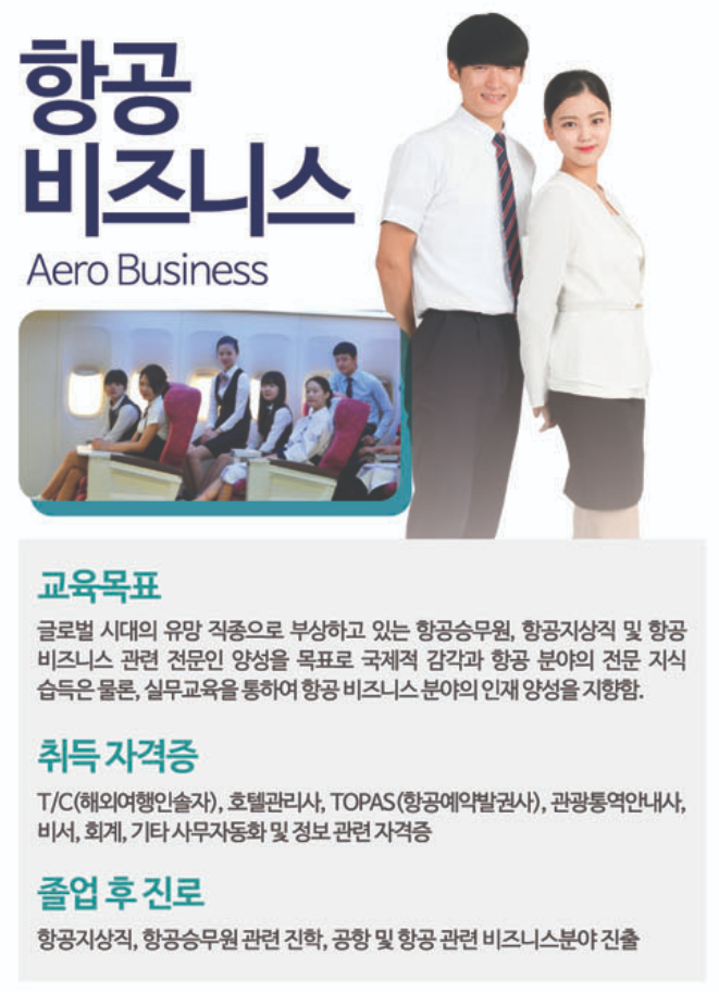 항공 기계/정비/전자 뿐만 아니라, 경영서비스학과도 있는 것이 특징입니다.