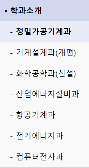 7개 학과 중 1개 학과만 항공분야에 해당합니다.